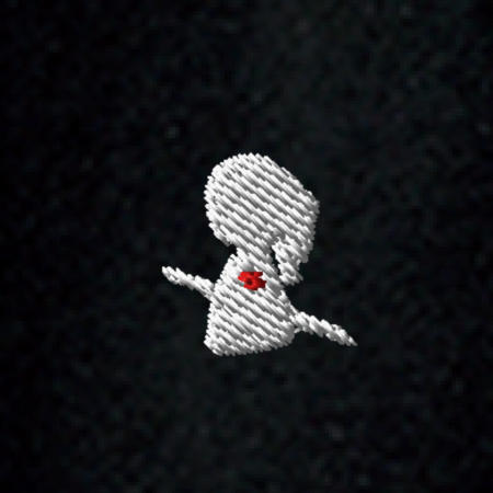 - 胸元の刺繍された輝くシンボルは、静かな強さを物語る。