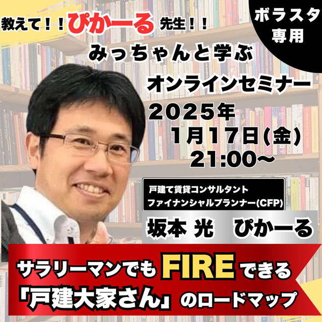 【ボラスタ専用】教えて!ぴかーる先生!サラリーマンでもFIREできる『戸建て大家さん』のロードマップ