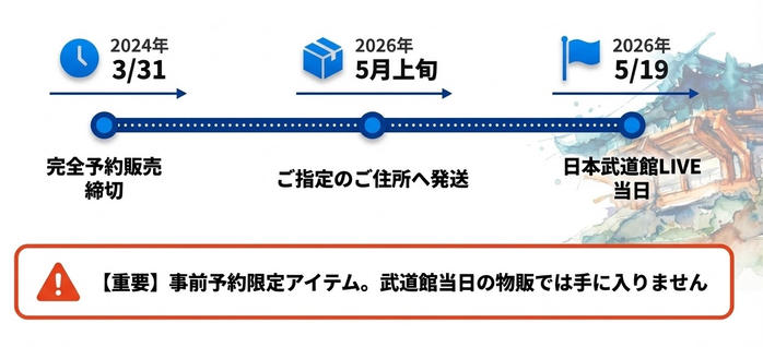 - 武道館当日の物販では手に入らない