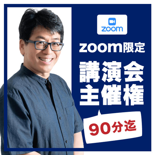 通常リアル開催で300万円のところクラファン特別価格でZOOMによる講演会(90分まで)を主催いただけます!