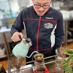 自分で焙煎したものを試飲します。 -